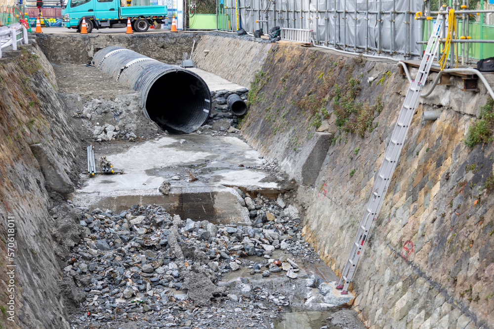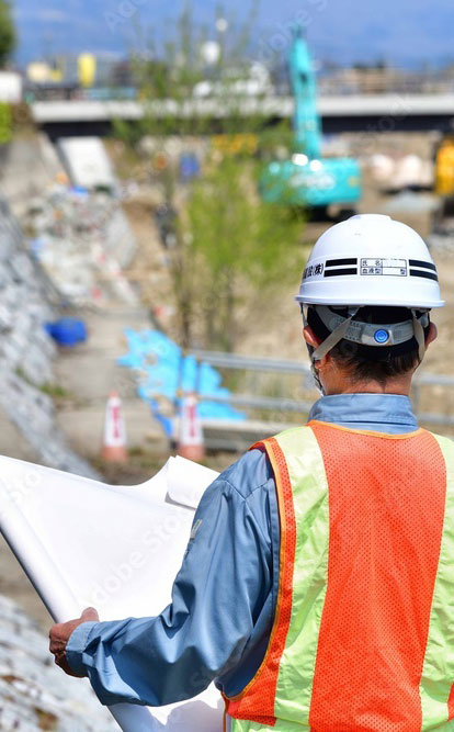 土木工事は、建築物の土台となる土地を整備する工事です。当社では主に名古屋市や愛知県、地方公共団体から公共工事を受注。調整池や排水路といったインフラ整備、公園施設の更新など暮らしに直結する工事のため、設計図を順守した施工品質と工事中の安全管理に配慮しています。